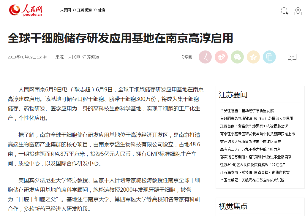2018-07-20 查看更多6月9日,全球干細胞儲存研發(fā)應用基地在南京高淳建成啟用。該基地可儲存口腔干細胞、臍帶干細胞300萬份,將成為集干細胞儲存、藥物…