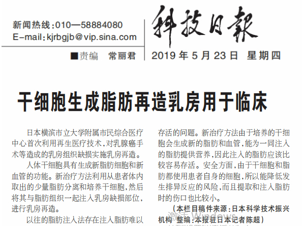 2019-05-24 查看更多日本橫濱市立大學(xué)附屬市民綜合醫(yī)療中心首次利用再生醫(yī)療技術(shù),對乳腺癌手術(shù)等造成的乳房組織缺損實(shí)施乳房再造。人體干細(xì)胞具有生…