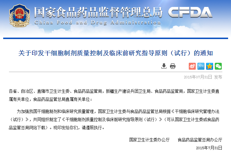 2015-07-31 查看更多各省、自治區(qū)、直轄市衛(wèi)生計(jì)生委、食品藥品監(jiān)管局,新疆生產(chǎn)建設(shè)兵團(tuán)衛(wèi)生局、食品藥品監(jiān)管局,國家衛(wèi)生計(jì)生委直屬有關(guān)單位,食品藥品監(jiān)管總局直屬有關(guān)單位: 為規(guī)范并促進(jìn)我國干細(xì)胞臨床研究,國家衛(wèi)生計(jì)生委與食品藥品監(jiān)管總局共同組織制定了《干細(xì)胞臨床…